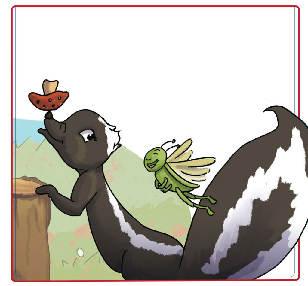 Meet Jolie! Jolie was a happy skunk who lived on a farm with her four kits. She minded her own business, and generally stayed out of everyone’s way. She had never sprayed anyone in self-defense, but when the farmer’s son tried to chase her away from the henhouse, she had no choice. But Jolie’s spray was much different from other skunks and led her to become a valuable member of the farm.